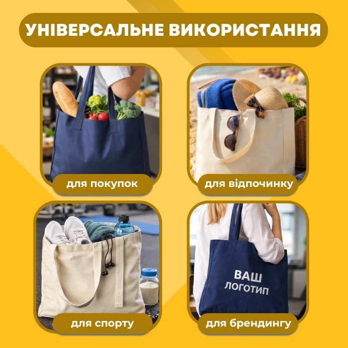 Эко-сумки (шоперы) отличная альтернатива полиэтиленовым пакетам. Используется для походов в магазин за продуктами или новыми вещами, поездок на пляж, прогулок по городу и т.д.