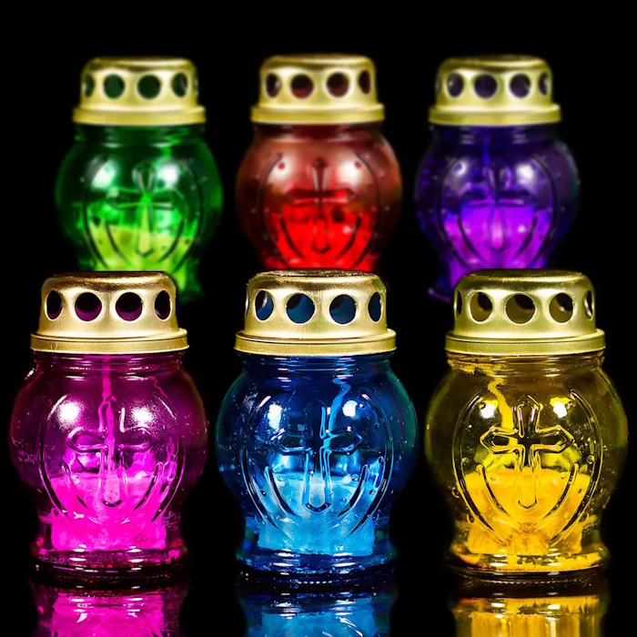 Данная лампадка содержит свечу из парафина, но при необходимости свечи в лампадах можно изменять.