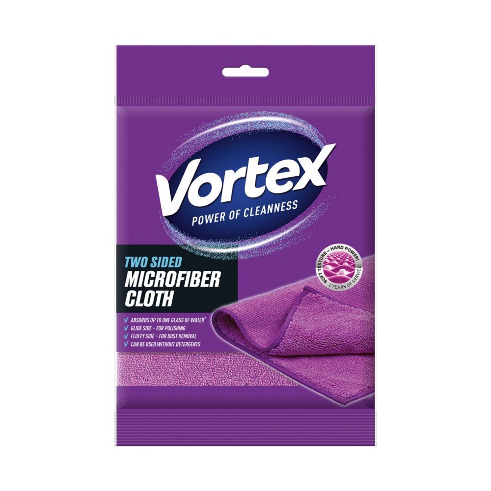 Салфетка "Vortex" - антисептическая и антибактериальная с двухсторонней микрофибры имеет одну сторону с полосами (микрощеточками) для деликатной очистки от загрязнений, а другая сторона (без полос) предначначена для качественной полировки с отличным впитыванием влаги.