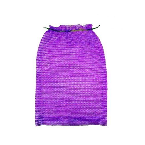 Овощная сетка фиолетового цвета, выглядит как мягкий сетчатый мешок с завязкой на горловине.