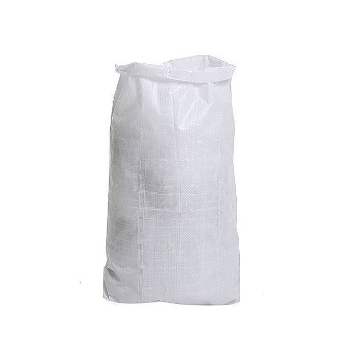Мешок белого цвета изготовлен из тканого полипропиленового полотна плотностью 44 гр/м2.