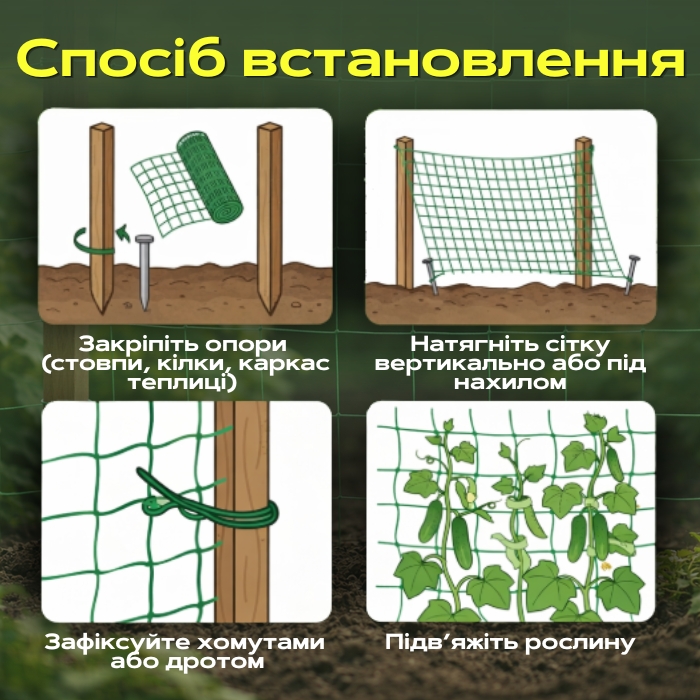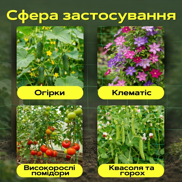 Идеально подходит для выращивания огурцов, гороха, фасоли, винограда и других вьющихся культур.