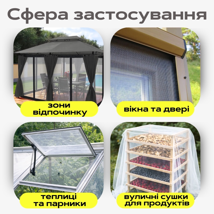 Предназначена для предотвращения проникновения в теплицы и другие помещения насекомых вредителей. Сетка в рулонах, легко режется под необходимые размеры фрамуг теплиц, садовых каркасов, окон, форточек, дверей. Она не рвется при растяжении, устойчива к воздействию ультрафиолета и пригодна для многократного использования.