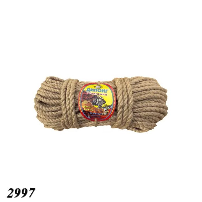 Джутовый канат считается екологически безопасным, ведь он изготовлен из натурального волокна, завитого диаметром 12 миллиметров и длинной 50 метров.