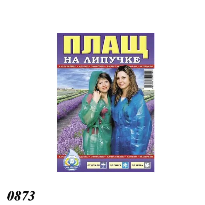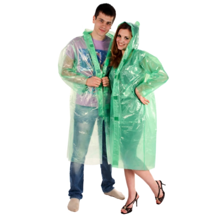 Дождевик изготовлен с плотного водонепроницаемого материала плотностью 60 мкм.