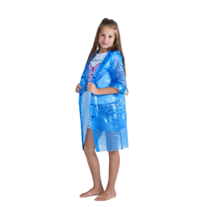 Дождевик изготовлен с плотного водонепроницаемого материала плотностью 60 мкм.