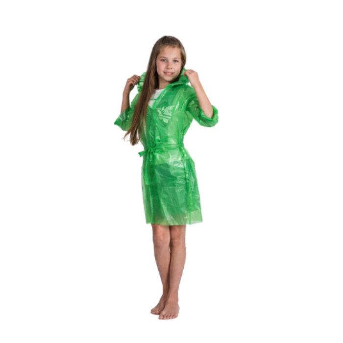 Дождевик изготовлен с плотного водонепроницаемого материала плотностью 60 мкм.