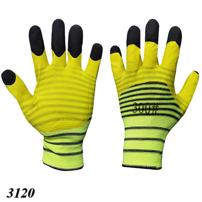Перчатки изготовлены из износостойкого материала. Имеют силиконовое напыление на ладонной части, и вспененное латексное покрытие на пальцах, которое обеспечивает более высокий коэффициент сопротивления к истиранию в области пальцев.
