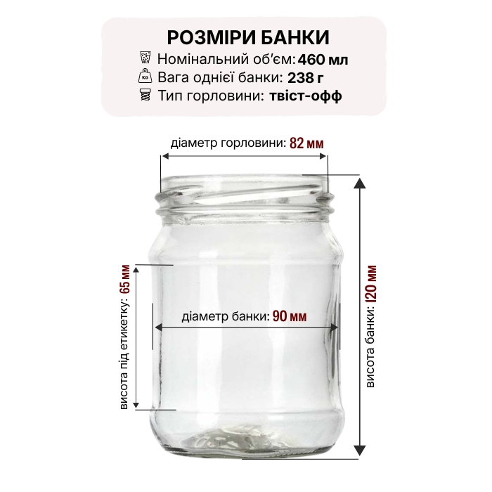 Цилиндрическая банка объемом 460 мл с классическим венчиком ТО 82 мм – надежная посуда для домашней и промышленной консервации. Прозрачное пищевое стекло позволяет контролировать цвет и плотность содержимого, а ровные стены обеспечивают аккуратную наклейку этикеток. Выдерживает многократную стерилизацию и пастеризацию, поэтому хорошо подходит для джемов, варенья, соусов, меда, тушенки и других заготовок.