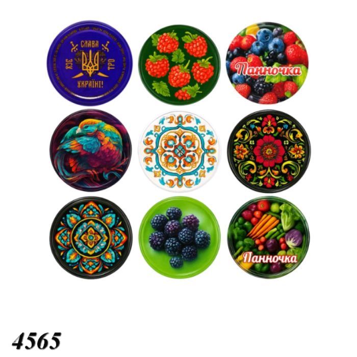 Крышка металлическая для консервации СКО-17ПП «Панночка» Микс — прочная герметичная крышка диаметром 82 мм с внутренним эмалированным покрытием, что предотвращает коррозию и сохраняет вкус продукта; яркое лаковое покрытие делает тару привлекательной, а равномерная резьба рассчитана на закручивание ключом (не вручную) для максимальной герметизации даже после длительного хранения. Идеальна для консервации, соусов и специй. Подходит как для бытового, так и промышленного использования. Выдерживает температуру до 100 °C.