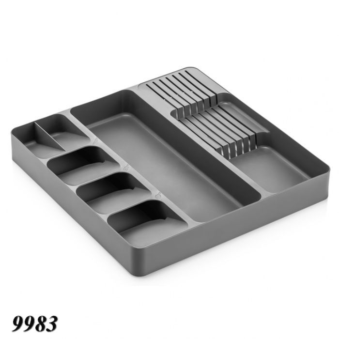Тройной лоток для столовых приборов из прочного пластика. Имеет удобные отсеки для ложек, вилок, ножей и кухонных принадлежностей. Благодаря размерам 380×390×55 мм подходит для больших кухонных ящиков. Помогает поддерживать порядок и гигиену, сохраняя приборы в должном месте.
