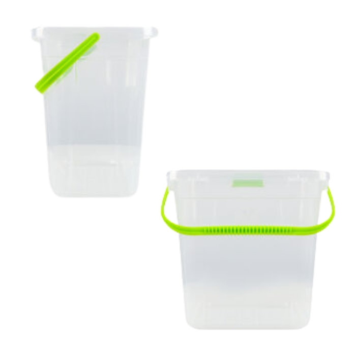 Контейнер изготовлен из прочного пластика, удобен в использовании, легко моется и помогает поддерживать порядок. Ручка обеспечивает комфортную переноску даже при полной загрузке.