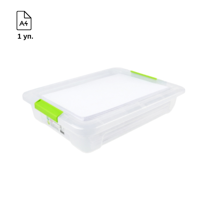Изготовлен из прочного пластика, контейнер удобен в использовании, легко открывается и подходит для хранения документов, офисной бумаги и канцелярских материалов.