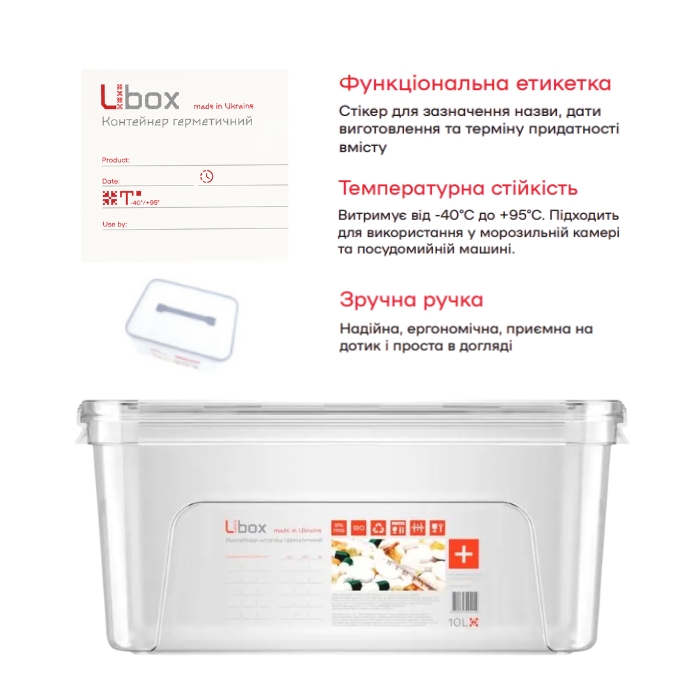 - функциональная этикетка – стикер для указания названия, даты изготовления и срока годности содержимого;