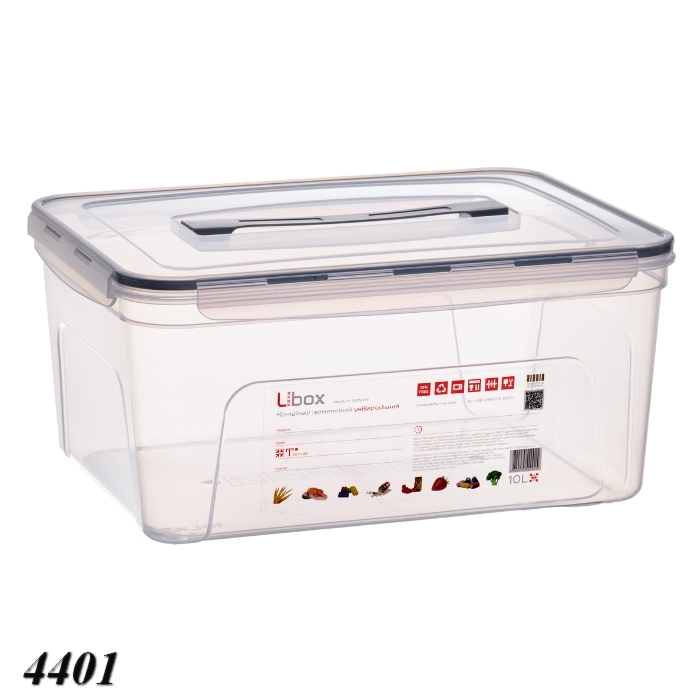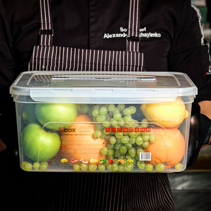 Герметичный контейнер Ubox объемом 10 л с ручкой – идеальное решение для хранения и транспортировки большого количества продуктов. Оснащен плотной крышкой с фиксаторами, обеспечивающими надежную герметичность и защиту от протечек. Удобная ручка облегчает переноску. Подходит для хранения готовых блюд, овощей, фруктов, сыпучих продуктов и еды.