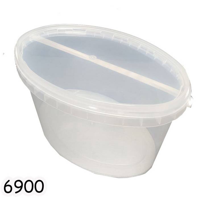 Пищевое контейнерное ведро - изготовлено из пищевого полипропилена прозрачного цвета, овальной формы рассчитано на 5 л, с крышкой на заклепках для герметизации и удобной пластмасовой ручкой для транспортировки.