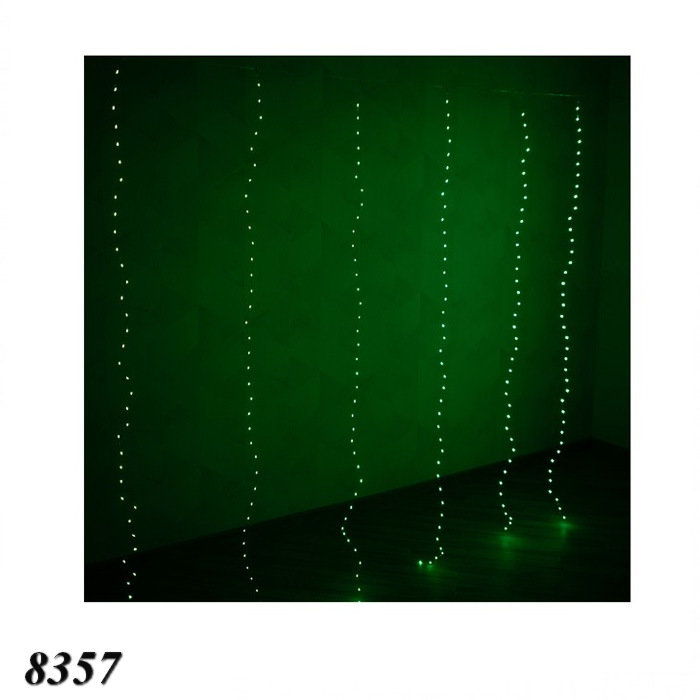 Светодиодные лампочки расположены на тонкой металлической проволоке, которая почти незаметна, поэтому кажется, будто в воздухе мерцают капельки света. Гирлянда легко принимает нужную форму, можно повесить как вертикальную штору или разложить на столе или арке.