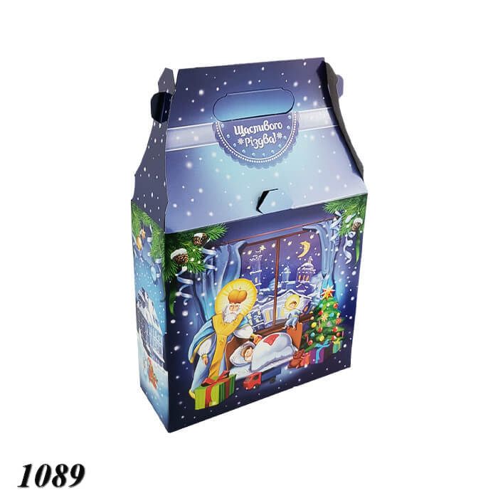 Новогодняя коробка «Домик Ночь на Николая» для сладких подарков, рассчитанная на 700 г конфет. Выполнен из плотного картона, имеет оригинальную форму домика и яркий дизайн с зимними мотивами. Идеальный выбор для детских, семейных и корпоративных подарков.