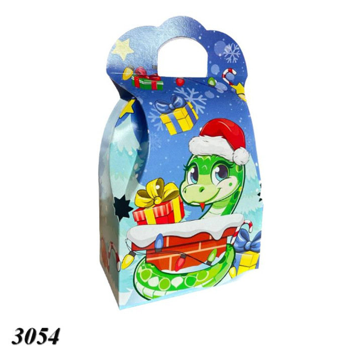 Веселая новогодняя коробка для конфет с изображением милой зеленой змейки в праздничной шапке. Идеально подходит для праздничных сюрпризов и конфет.