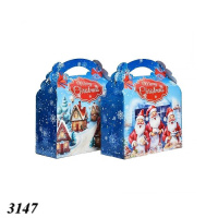 Подарочная коробка «Три Санты» объёмом 1100 г — волшебное решение для упаковки сладостей, небольших сувениров или тематических наборов к Новому году. Дизайн украшен тремя весёлыми Санта-Клаусами в красных шубах, создавая атмосферу радости и праздничного уюта.