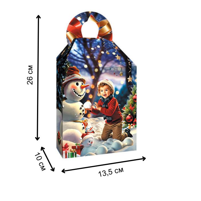 Новая подарочная коробка «Снеговик и дети» - это праздничная упаковка для сладостей и небольших подарков. Он сделан из сильного картона с красочным зимним дизайном, изображающим снеговика и детей, играющих на снегу. Создает теплую и радостную праздничную атмосферу, идеально подходящую для Рождества и Нового года.
