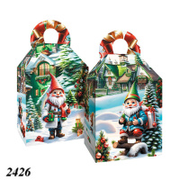 Праздничный гном с подарками на фоне зимнего леса делает эту коробку прекрасным выбором для новогоднего подарка. Вмещает до 700 г сладостей.