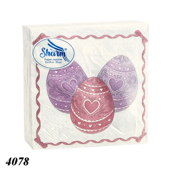 Бумажные салфетки Sharm "Пасхальные яйца" – элегантный вариант для праздничной сервировки стола на Пасху. Дизайн с декоративными писанками в нежных оттенках придает уют и праздничное настроение. Двухслойные салфетки хорошо впитывают влагу, прочные и удобные в использовании.