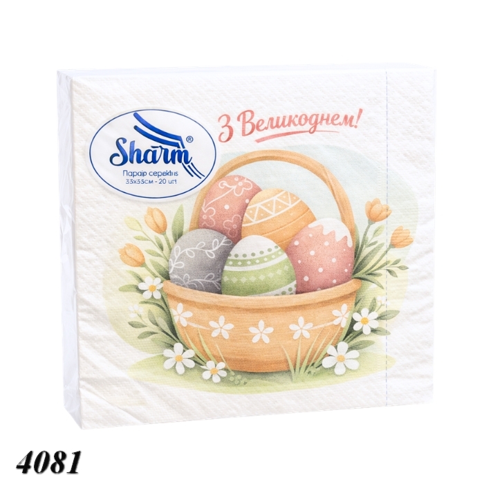 Бумажные салфетки Sharm "Пасхальная корзина" - идеальный выбор для праздничной сервировки стола. Декоративный дизайн с корзиной, писанками и цветами создает теплую пасхальную атмосферу. Двухслойные салфетки хорошо впитывают влагу, не рвутся и приятны в использовании. Подходят для дома, кафе и праздничных мероприятий.