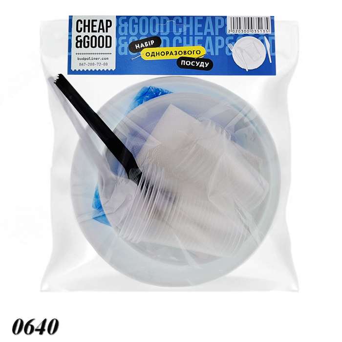 Набор одноразовой посуды CHEAP&GOOD на 5 персон – удобное решение для праздников, пикников, фуршетов или корпоративов. Посуда изготовлена из качественного пищевого пластика, не деформируется при контакте с горячими блюдами, безопасна и легка. После использования не требует мытья – просто утилизируется. Идеально подходит для быстрой сервировки на природе или офисе. Изделие изготовлено в соответствии с требованиями ГОСТ с соблюдением всех стандартов качества и полностью соответствует санитарно-гигиеническим нормам для контакта с пищевыми продуктами.