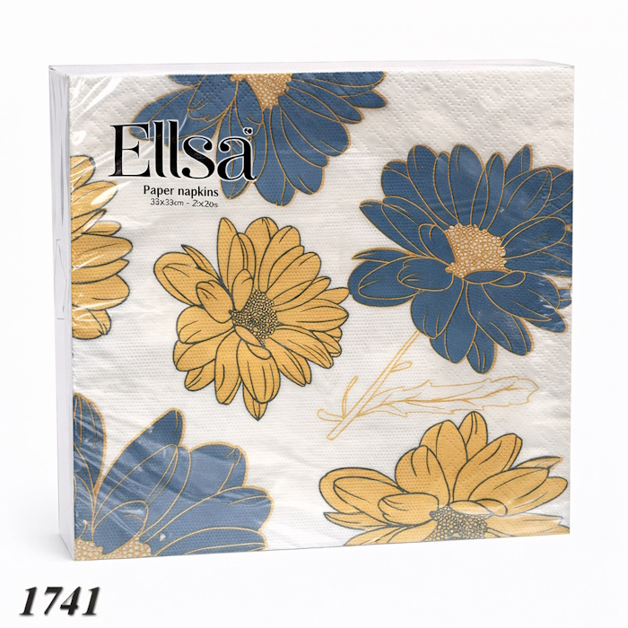 Бумажные салфетки Ellsa "Желтые и голубые цветы" - набор из 20 двухслойных салфеток с ярким цветочным дизайном. Изготовлены из мягкой целлюлозы, приятны на ощупь и хорошо впитывают влагу. Сочетание желтых и голубых цветов создает нежное, весеннее настроение. Идеально подходят для домашнего использования, праздничного стола, кафе или ресторанов.