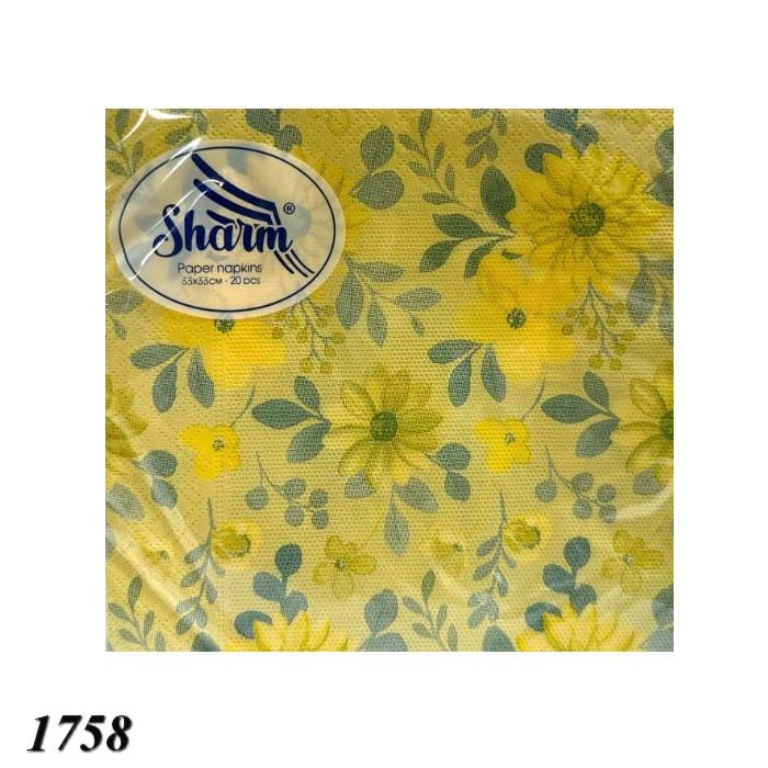 Бумажные салфетки Sharm «Цветы желтые» – набор из 20 двухслойных салфеток с нежным цветочным рисунком. Изготовлены из мягкой целлюлозы, приятны на ощупь, крепкие и хорошо впитывают влагу. Дизайн с цветами добавляет свежести и гармонии, отлично подходит для весенней или праздничной сервировки дома, в кафе или ресторане.