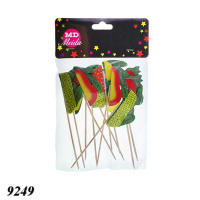Декоративная деревянная шпажка с фигурками фруктов – стильное решение для сервировки канапе, десертов или коктейлей. Длина 10 см позволяет удобно нанизывать кусочки фруктов, сыра, овощей или мяса. Верхушка украшена разноцветными миниатюрами в форме фруктов (ананас, клубника, вишня и т.д.), что придает праздничность и привлекательный вид. Идеально подходит для вечеринок, фуршетов, кейтеринга и детских праздников.