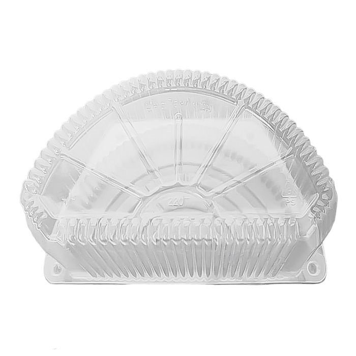 Одноразовый контейнер для полторта, 500 г — удобная и практичная упаковка для транспортировки и хранения пирожных, кусков торта или половинок круглых изделий. Изготовлен из прозрачного пищевого PET-пластика, позволяющего выгодно презентовать содержимое. Обладает надежной фиксацией крышки, что обеспечивает герметичность и защиту от деформаций во время транспортировки. Идеально подходит для кондитерских, пекарен, супермаркетов и доставки.